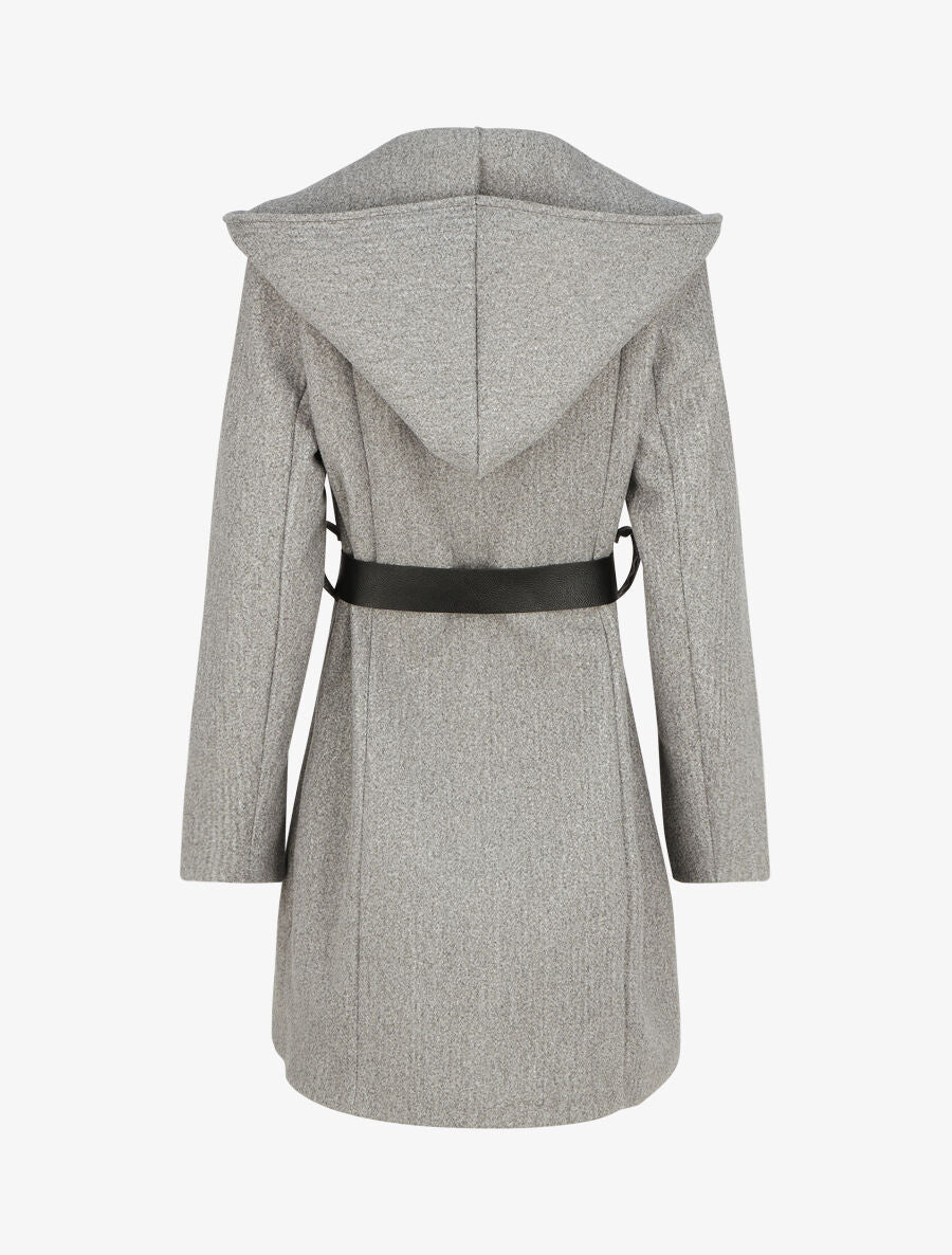 Abrigo con capucha y cinturón – Gris