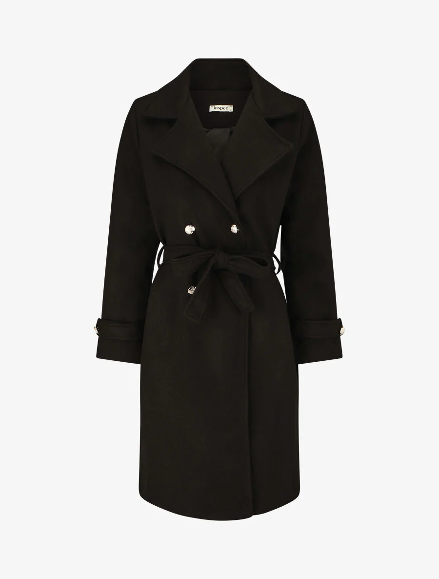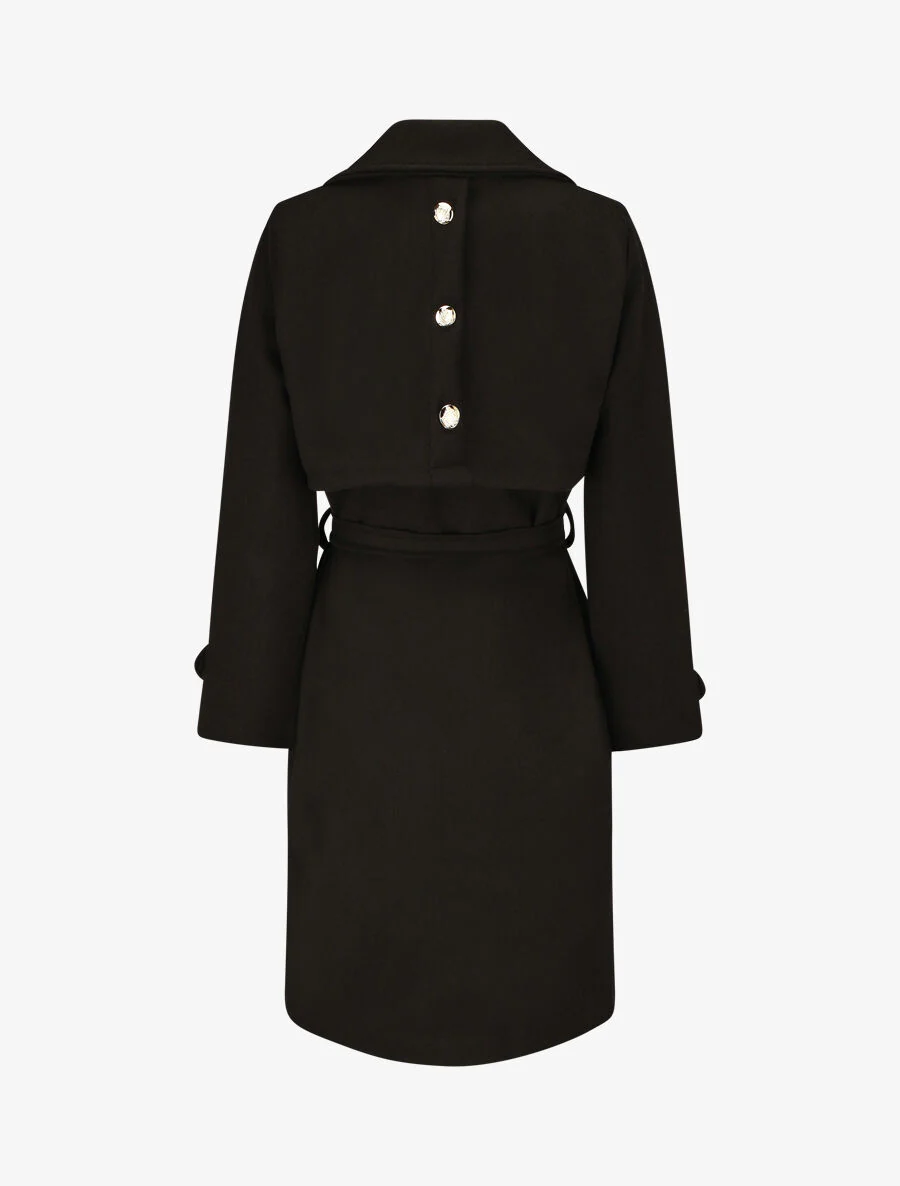 Abrigo largo con botones decorativos en la espalda – Negro