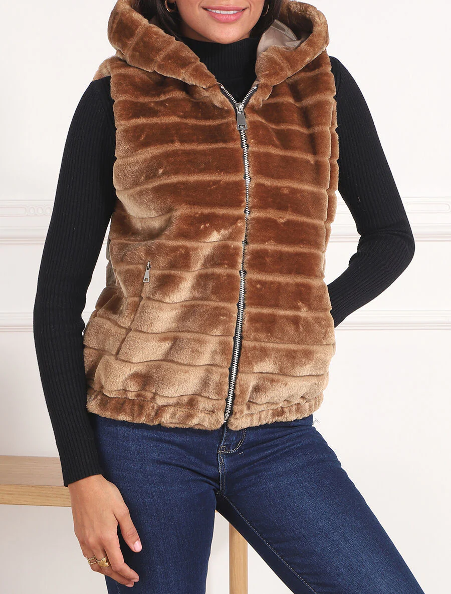 Sé el primero en valorar “Abrigo sin mangas de piel sintética. – Camello”