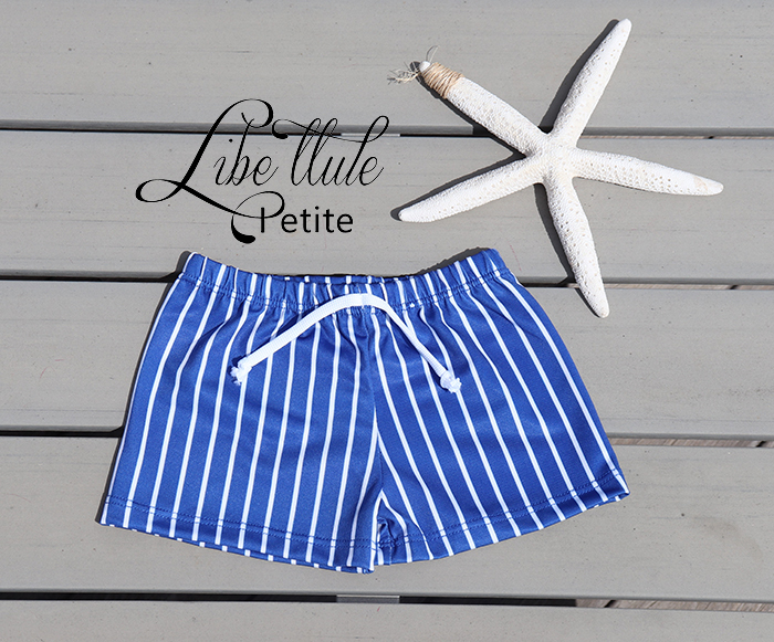 Bañador de niño azul con rayas.