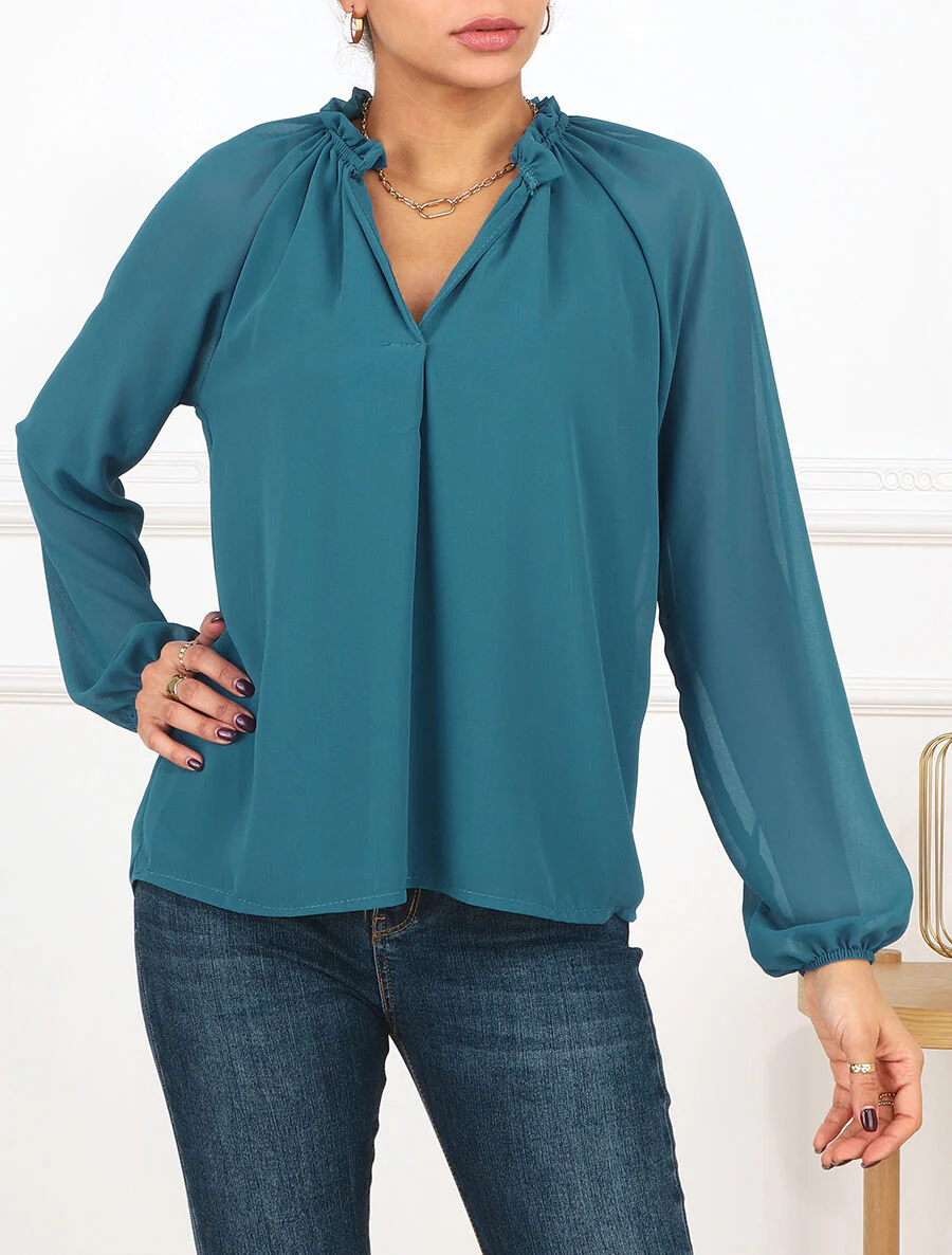 Sé el primero en valorar “Blusa amplia lisa de mangas largas – Azul pato”