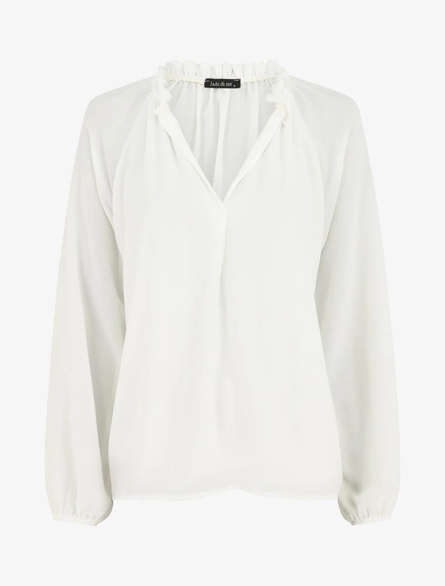 • Cuello en V con volantes
