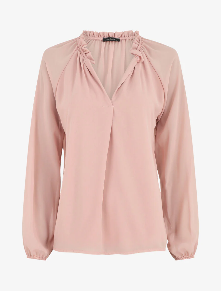 - Cuello en V con volantes