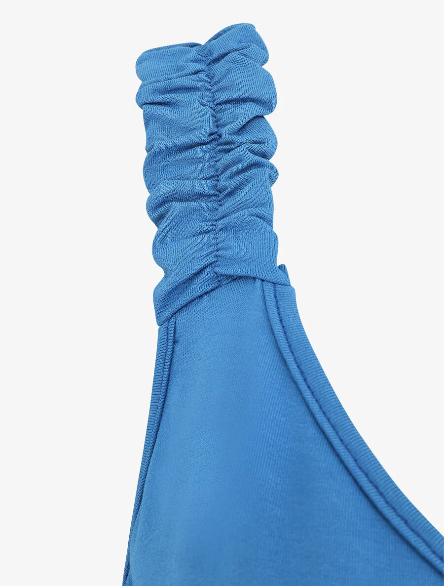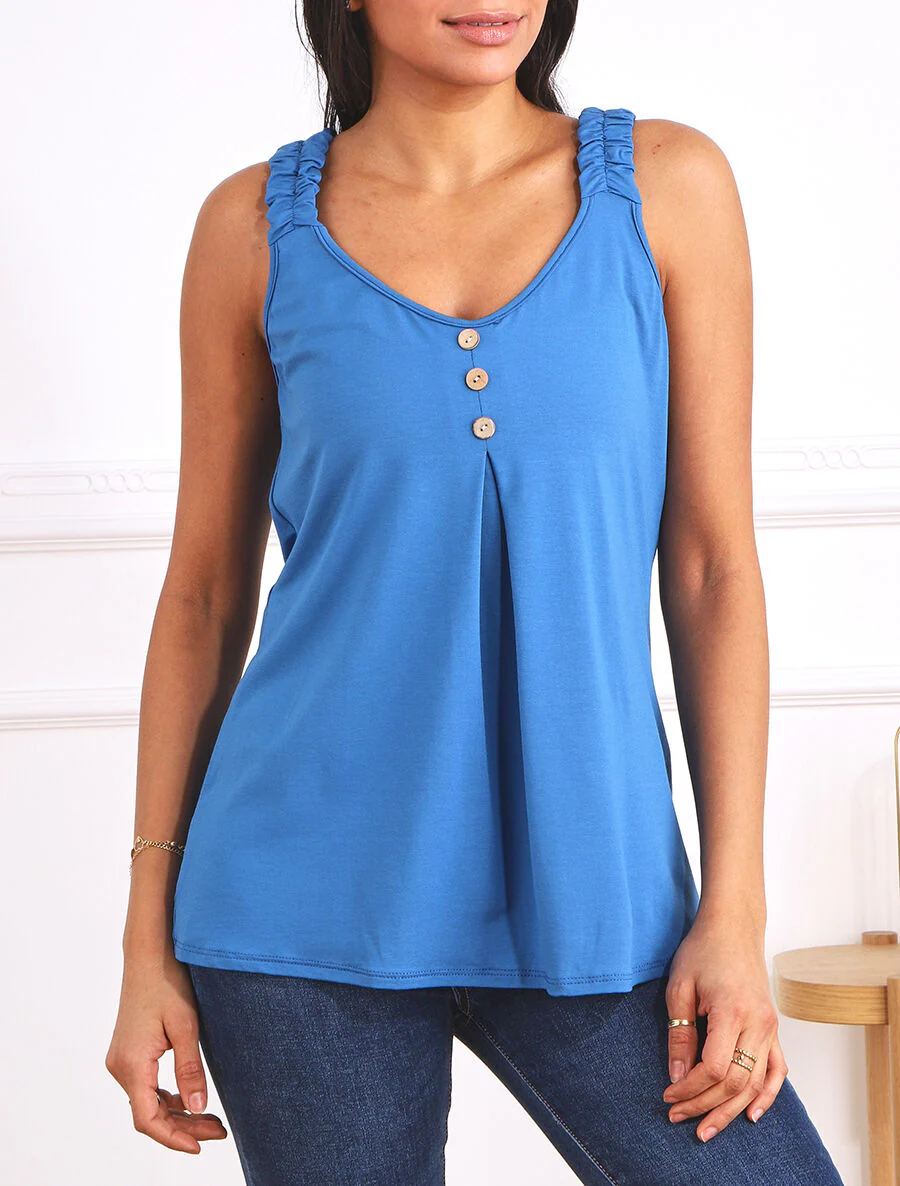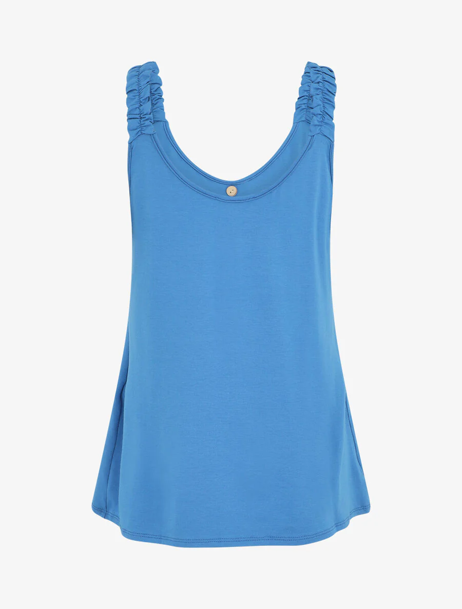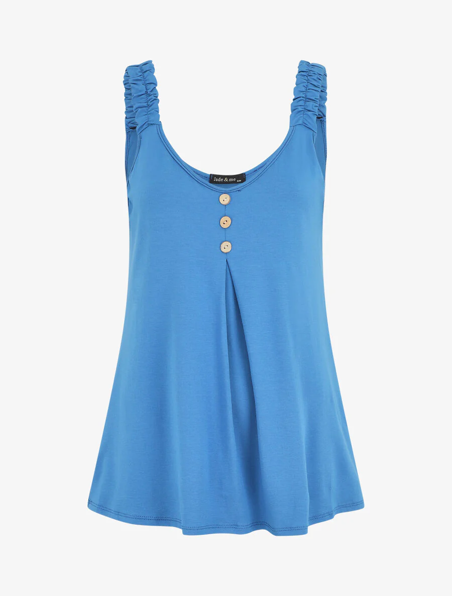 Camiseta sin mangas oversize con tirantes fruncidos y botones. – Azul
