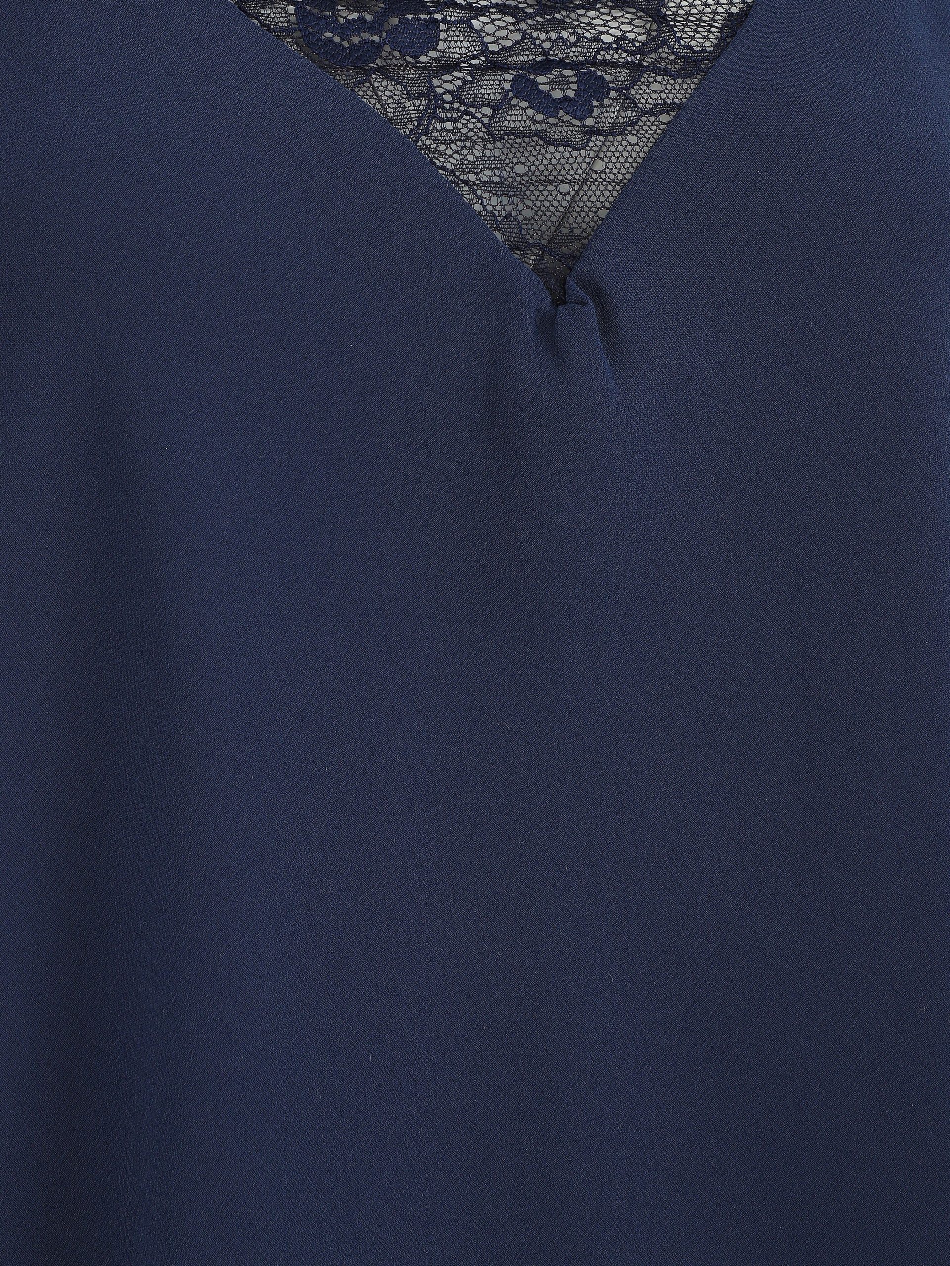 - Cuello en V adornado con encaje