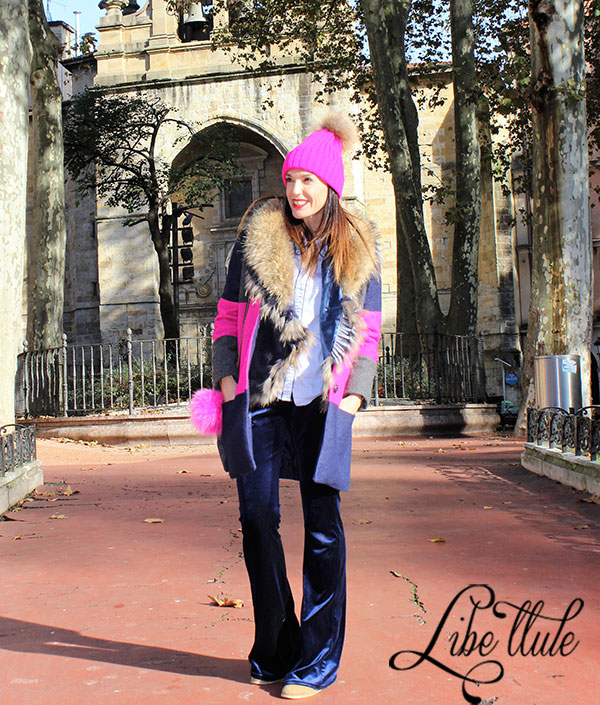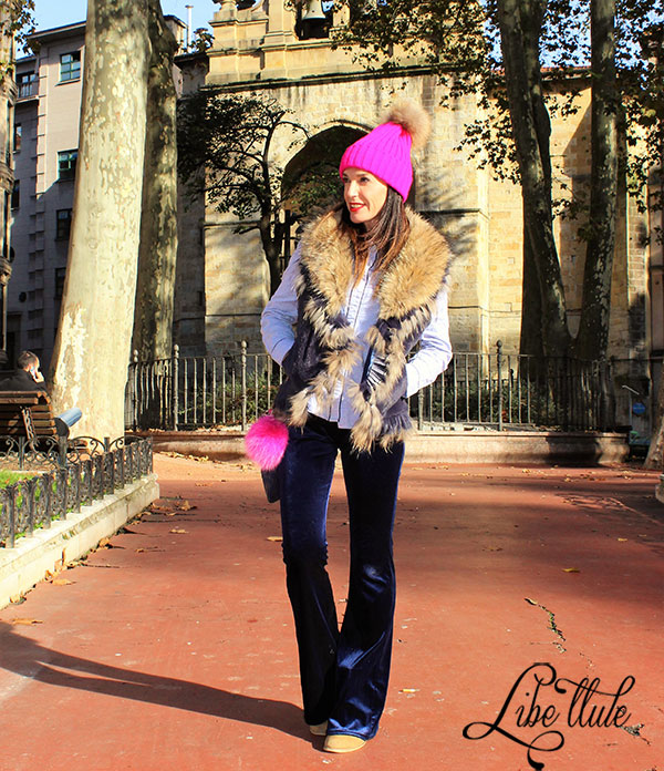 Chaleco de piel de conejo y zorro en cuello y detalles.