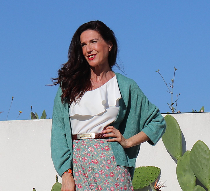 Chaqueta de punto over size de color verde agua, ideal para combinar con blusas o camisetas lenceras.