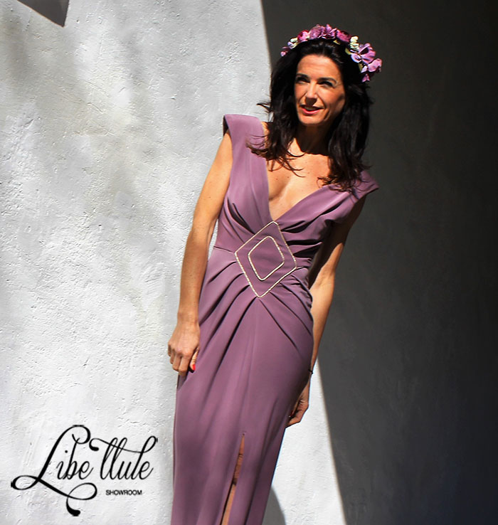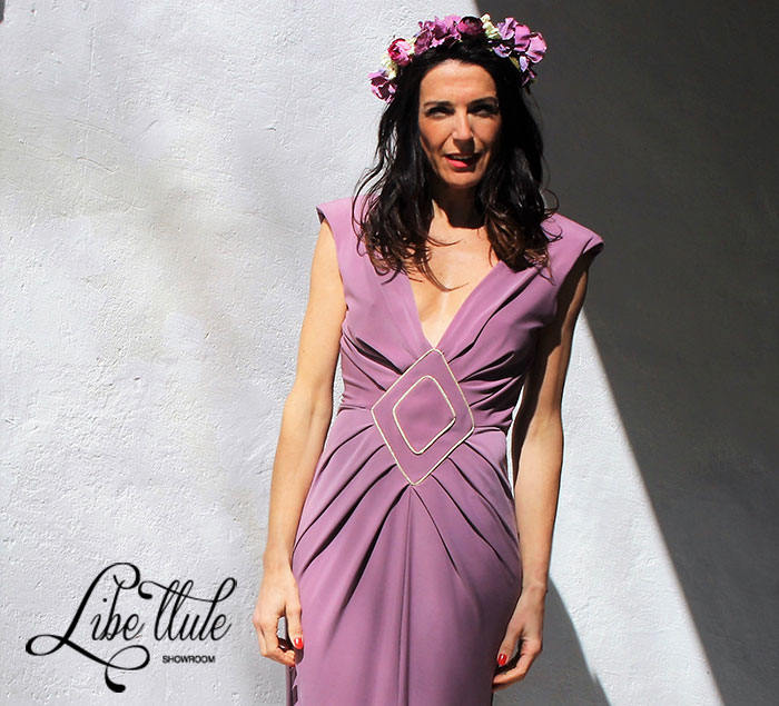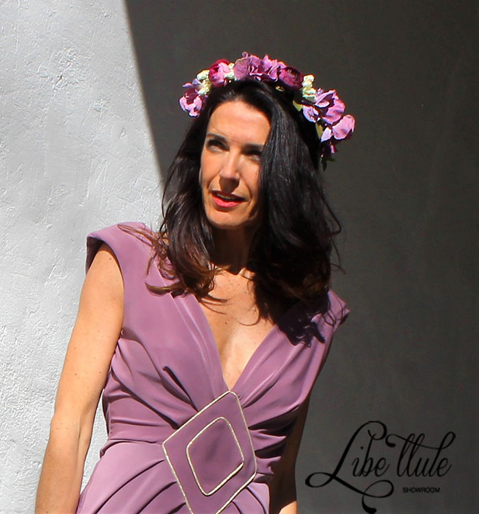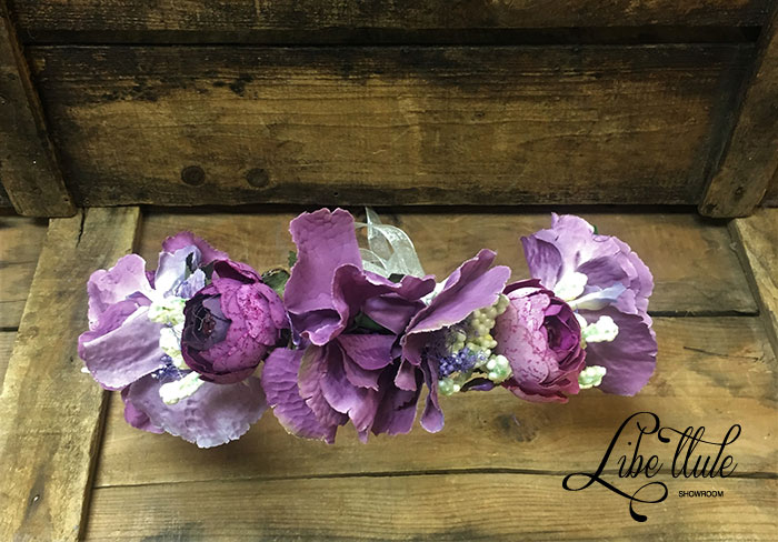 Corona de flores en color malva y morado de Libe llule.