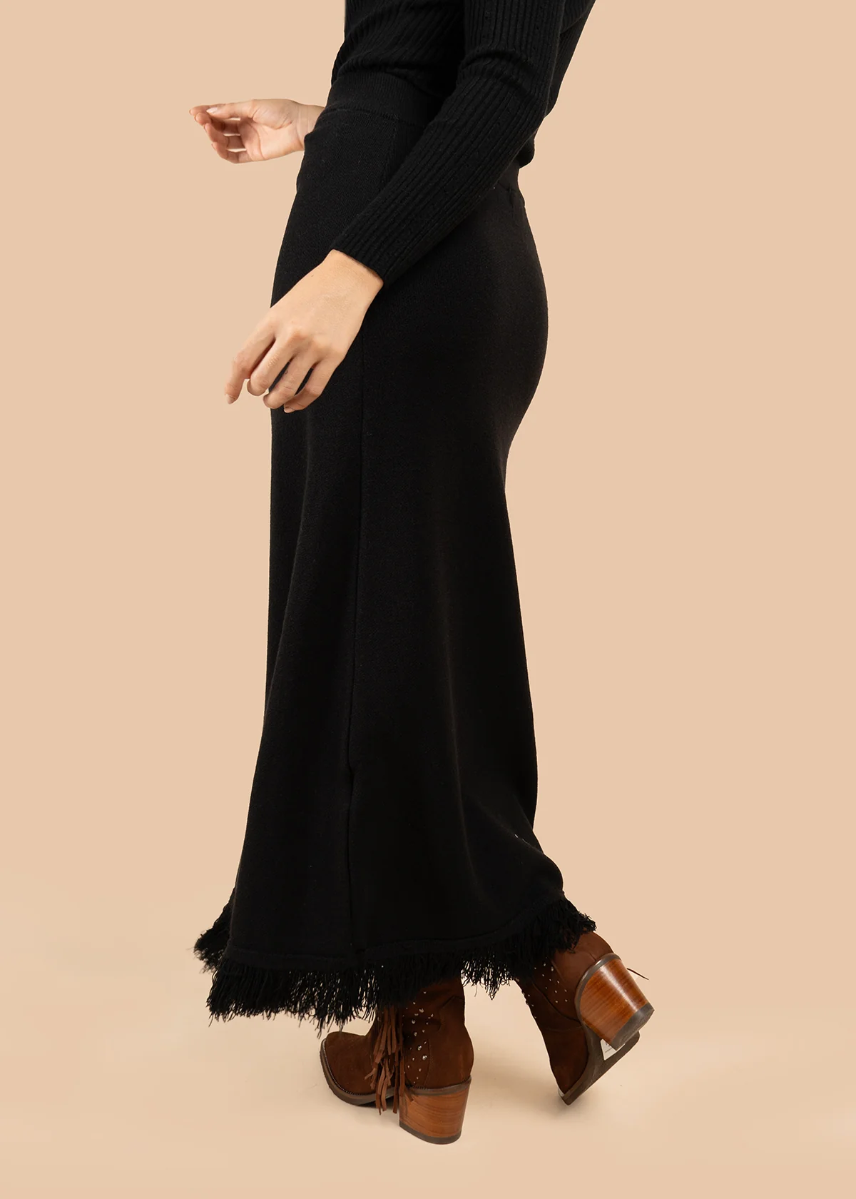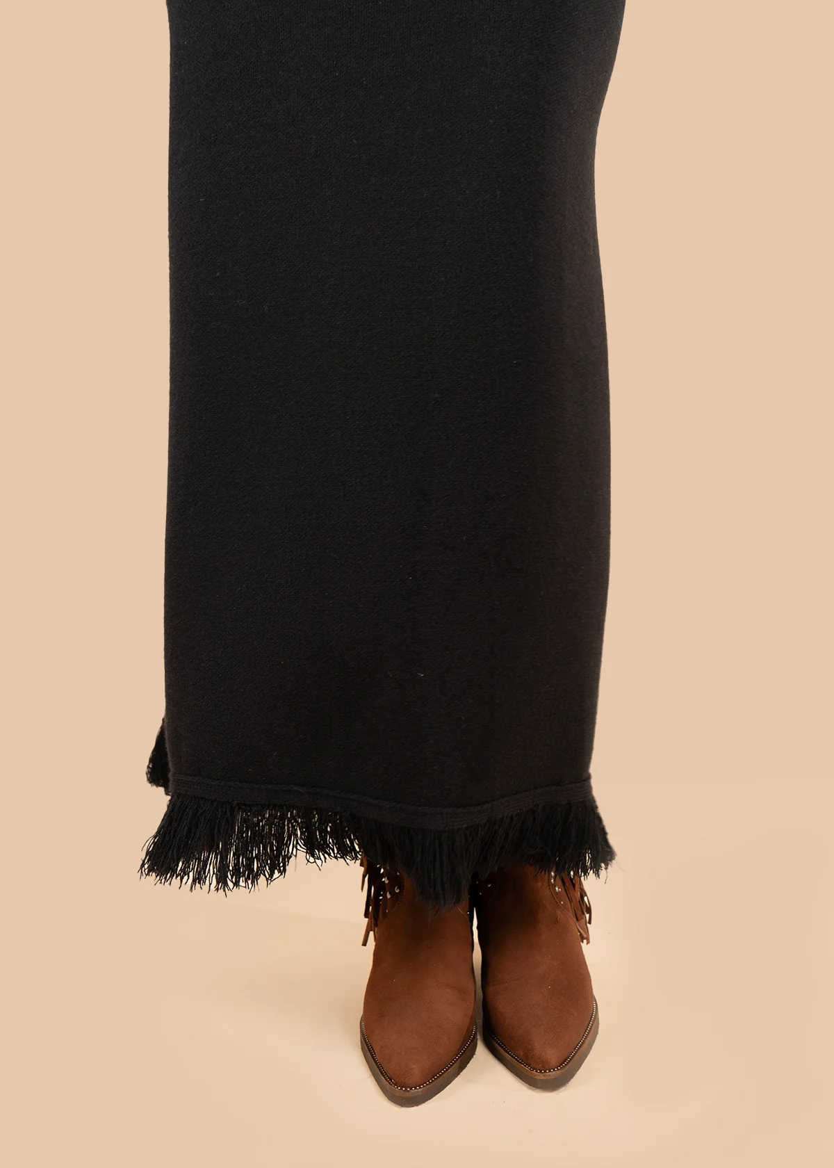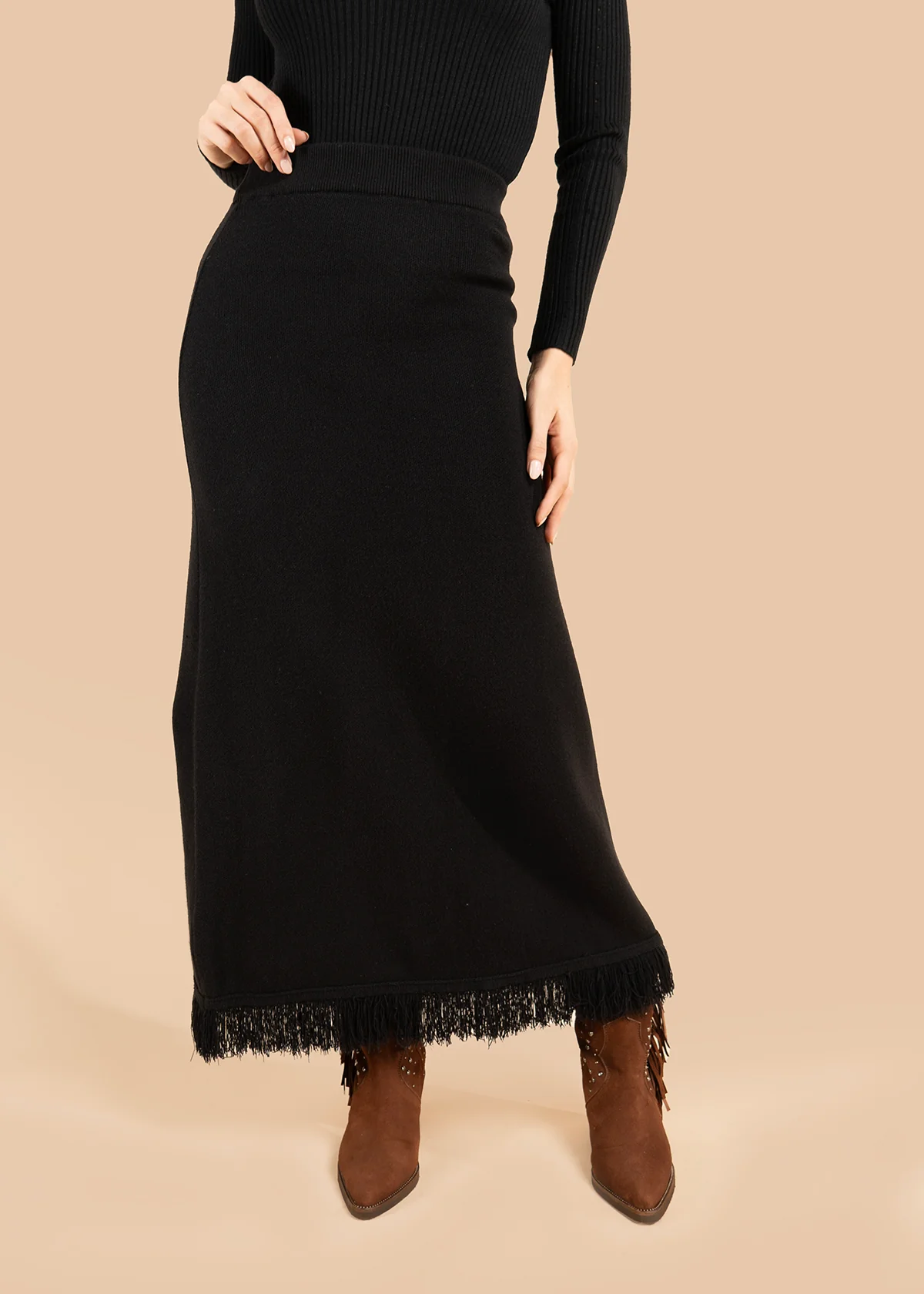 Falda color negro con detalle de flecos y estilo bohemio COSMOS