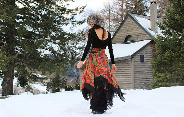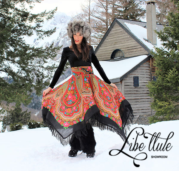 Falda larga elaborada con nuestros mantones Matriuska elaborados a medida bajo encargo en todas las tallas.