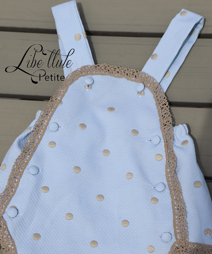 Ranita de bebé Petite Libe llule de pique con topitos ideal para los más pequeños. Confeccionado con mimo de manera artesanal y cuidando cada detalle desde la talla 3 meses y hasta 24 meses.