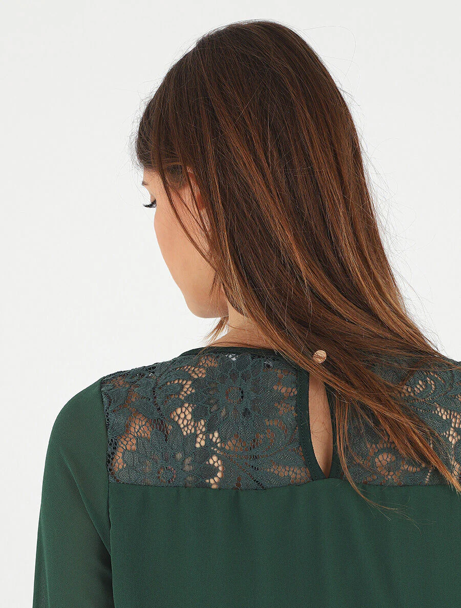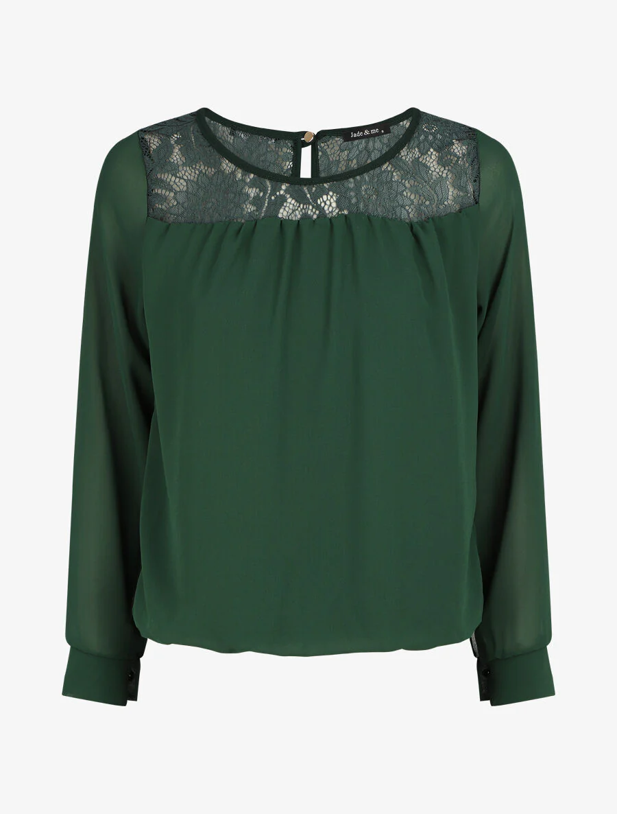 - Escote redondo de encaje