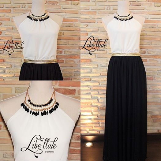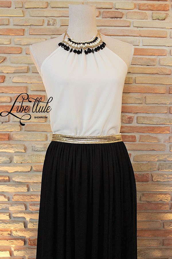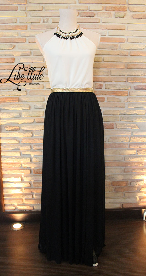 Vestido largo de gasa con detalle de collar en la parte delantera.