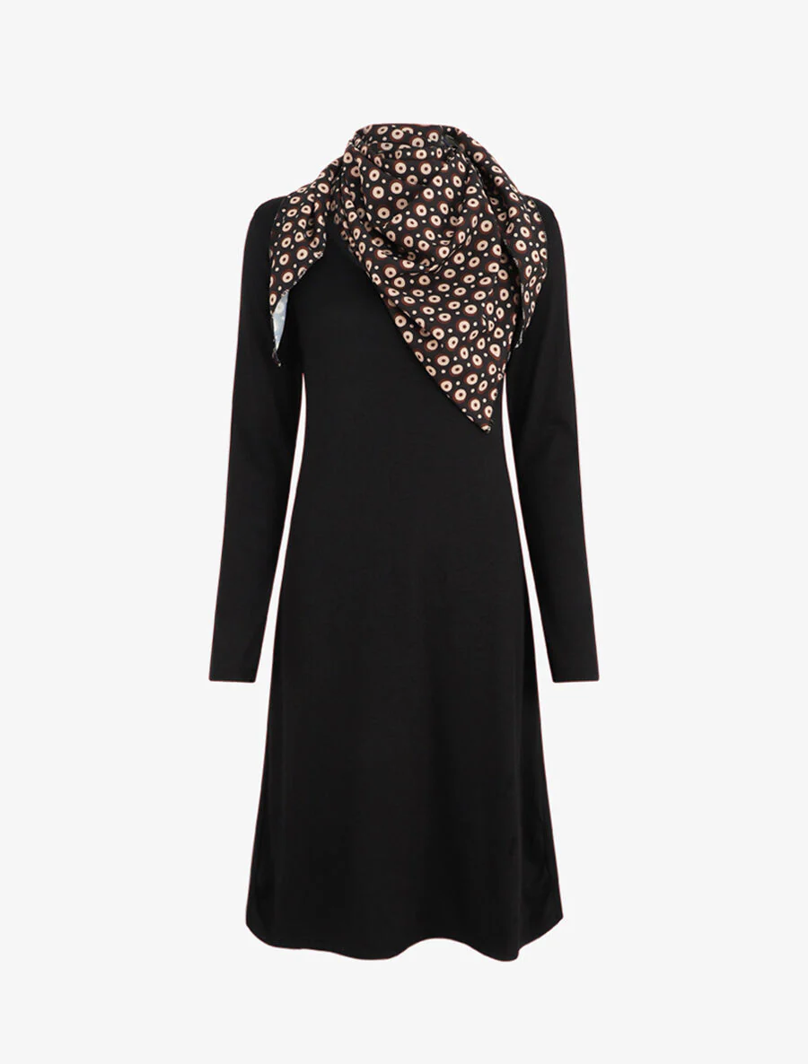 Sé el primero en valorar “Vestido suéter de media longitud con pañuelo – Negro”