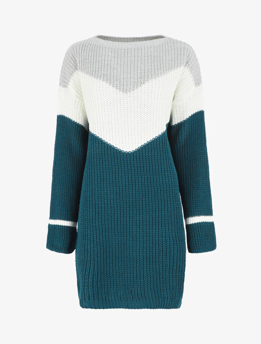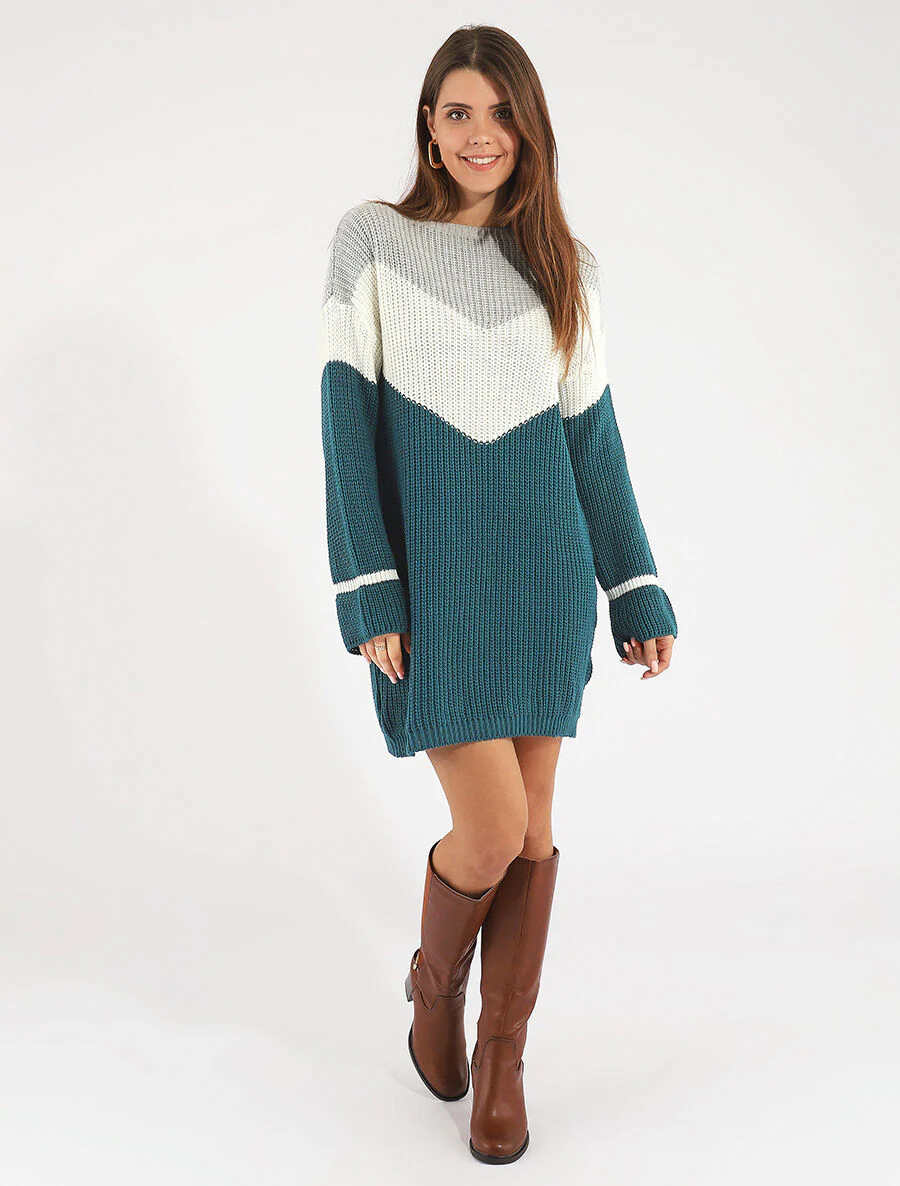 Vestido suéter holgado motivo V – Azul pato