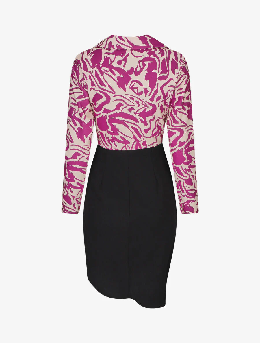 Vestido tubo con cuello cruzado estampado gráfico – Malva