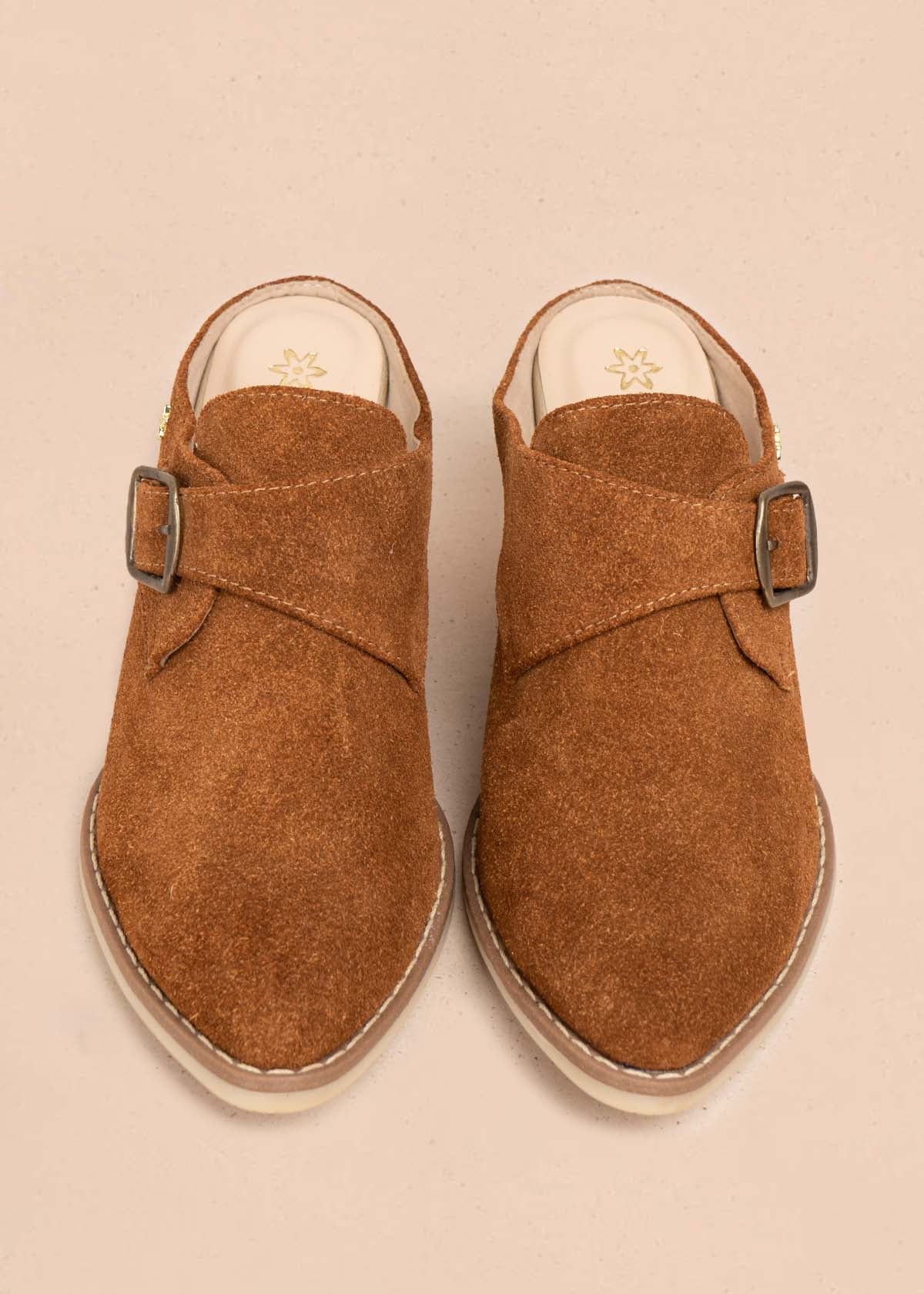 Zuecos en cuero color canela con correa COSMOS
